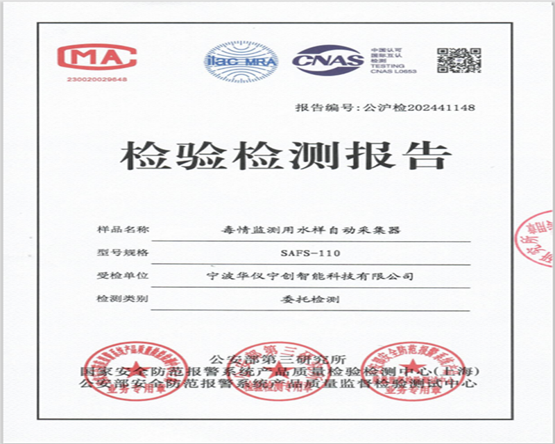 喜報(bào) | 華儀寧創(chuàng)毒情監(jiān)測(cè)用水樣自動(dòng)采集器獲得公安部警用裝備檢測(cè)認(rèn)證 2024-03-29 近日,華儀寧創(chuàng)基于國產(chǎn)原創(chuàng)技術(shù)研發(fā)推出的毒情監(jiān)測(cè)用水樣自動(dòng)采集器SAFS-110經(jīng)過各項(xiàng)關(guān)鍵指標(biāo)評(píng)測(cè)后,順利獲得公安部警用裝備檢測(cè)認(rèn)證。該款設(shè)備是業(yè)內(nèi)第一款滿足《中華人民共和國公共安全行業(yè)標(biāo)準(zhǔn)-監(jiān)測(cè)用水樣自動(dòng)采集器(征求意見稿)》內(nèi)所有技術(shù)要求污水采樣器,且每項(xiàng)關(guān)鍵指標(biāo)均獲得公安部認(rèn)證。華儀寧創(chuàng)毒情監(jiān)測(cè)用水樣采集器SAFS-110,內(nèi)置專用冷凍系統(tǒng),可以在采樣過程中遠(yuǎn)程對(duì)樣本進(jìn)行-22℃冷凍處理,冷凍溫度可保證水樣在送檢時(shí)水質(zhì)不發(fā)生變化,確保檢測(cè)結(jié)果的準(zhǔn)確性。這款設(shè)備不受地理位置和環(huán)境差異影響、可滿足現(xiàn)場各種復(fù)雜情況… 查看詳情