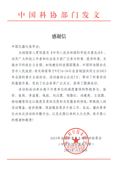 此次科普日活動觀眾量近5萬人次,華儀寧創接待觀眾近2萬,現場反響異常熱烈。許多學生和家長結束參觀后,在現場媒體的采訪中都會介紹到,在參觀途中令自己印象最深刻的是禁毒黑科技展區?;顒咏Y束后,華儀寧創收到了來自中國科協的感謝信。