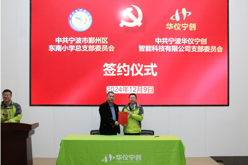 為深入貫徹黨的二十大精神,推動雙方在科技教育、人才培養(yǎng)、社會服務(wù)等方面的深度合作。2024年12月9日,中共寧波華儀寧創(chuàng)智能科技有限公司黨支部(以下簡稱華儀寧創(chuàng)黨支部)與中共寧波市鄞州區(qū)東南小學(xué)黨支部(以下簡稱東南小學(xué)黨支部)在華儀寧創(chuàng)報(bào)告廳舉行了黨建聯(lián)建簽約儀式。東南小學(xué)黨支部黨總支書記謝增煥、黨支部書記鮑期峰、黨支部書記繆潔及黨員代表、華儀寧創(chuàng)黨支部書記聞路紅,副書記范國正、委員劉云、馮建英及黨員代表參會。