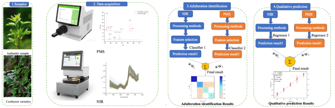 刺五加(Acanthopanax senticosus),又名西伯利亞人參,在中日韓及俄羅斯等國家被廣泛用于保健品和藥用制劑。由于其具有抗氧化、抗炎、增強免疫等多種藥理活性,在市場上需求旺盛,價格較高。然而,與其形態(tài)近似的易混淆品常被非法摻入,給中藥材市場帶來了嚴峻挑戰(zhàn)。為解決傳統(tǒng)色譜手段現(xiàn)場檢測耗時耗材、操作復雜的問題,研究團隊創(chuàng)新性地將便攜式質(zhì)譜(PMS)與近紅外光譜(NIR)技術相結合,構建融合模型,從而實現(xiàn)對刺五加摻偽行為的快速識別與摻偽比例定量分析。