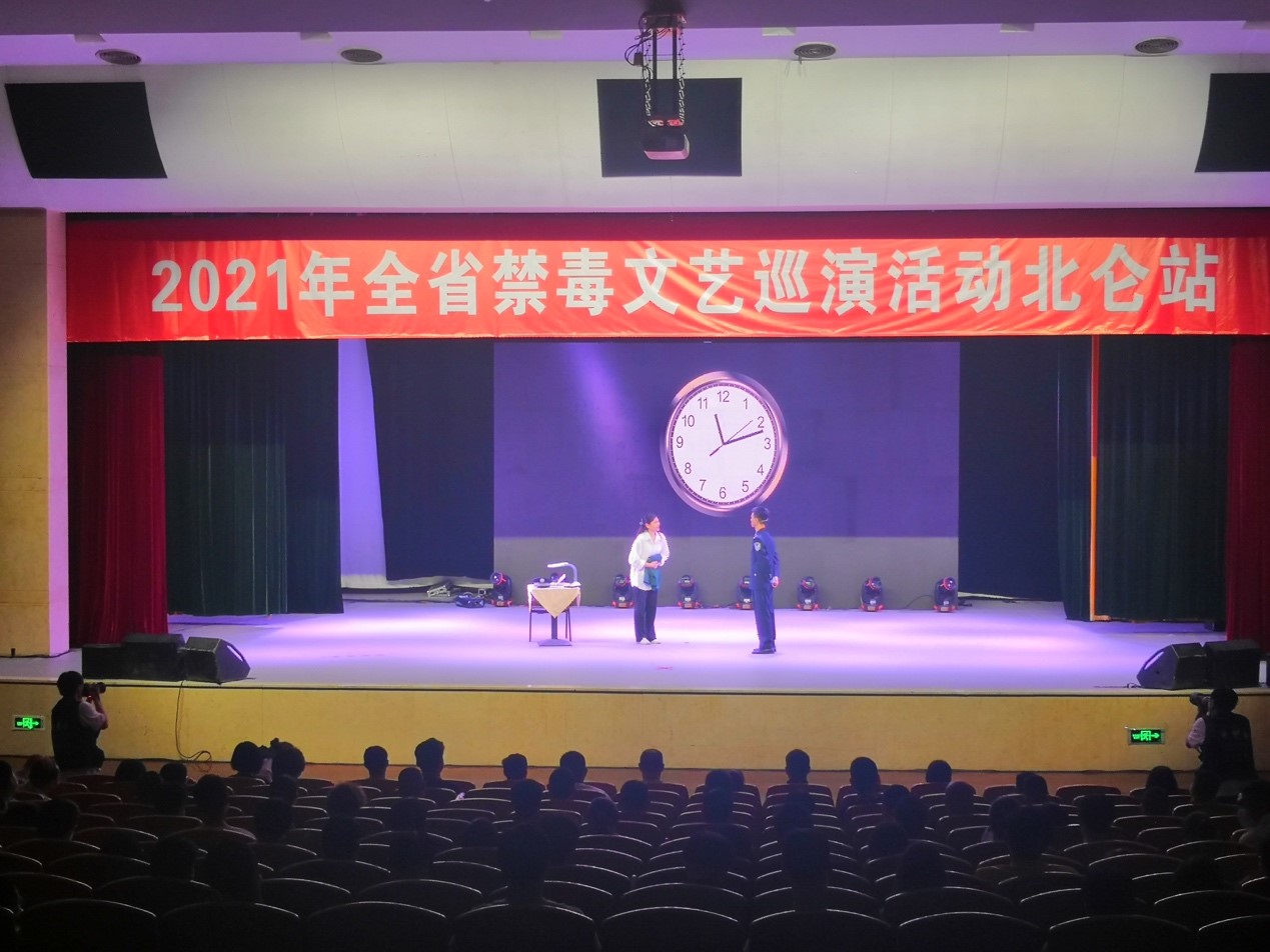 錢江浪花藝術團帶來了禁毒主題情景劇《曉偉的禁毒日志》,通過一位禁毒警察的日記,展現了禁毒工作者的英勇無畏、無私奉獻的精神。故事改編自禁毒民警的真人真事,演員們細膩鮮活的表演,配合恰到好處的音樂與特效,將毒品對人物生命的荼毒表現得淋漓盡致,將毒品危害家庭的一幅幅畫面深深地烙在觀眾心頭。精彩的演出贏得了在場觀眾的陣陣掌聲。