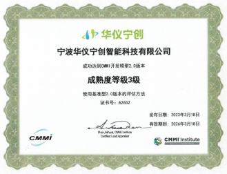 3月18日,經國際權威機構評估,寧波華儀寧創智能科技有限公司順利通過全球軟件領域CMMI三級(簡稱CMMI3)認證,并榮獲CMMI3級評估證書。